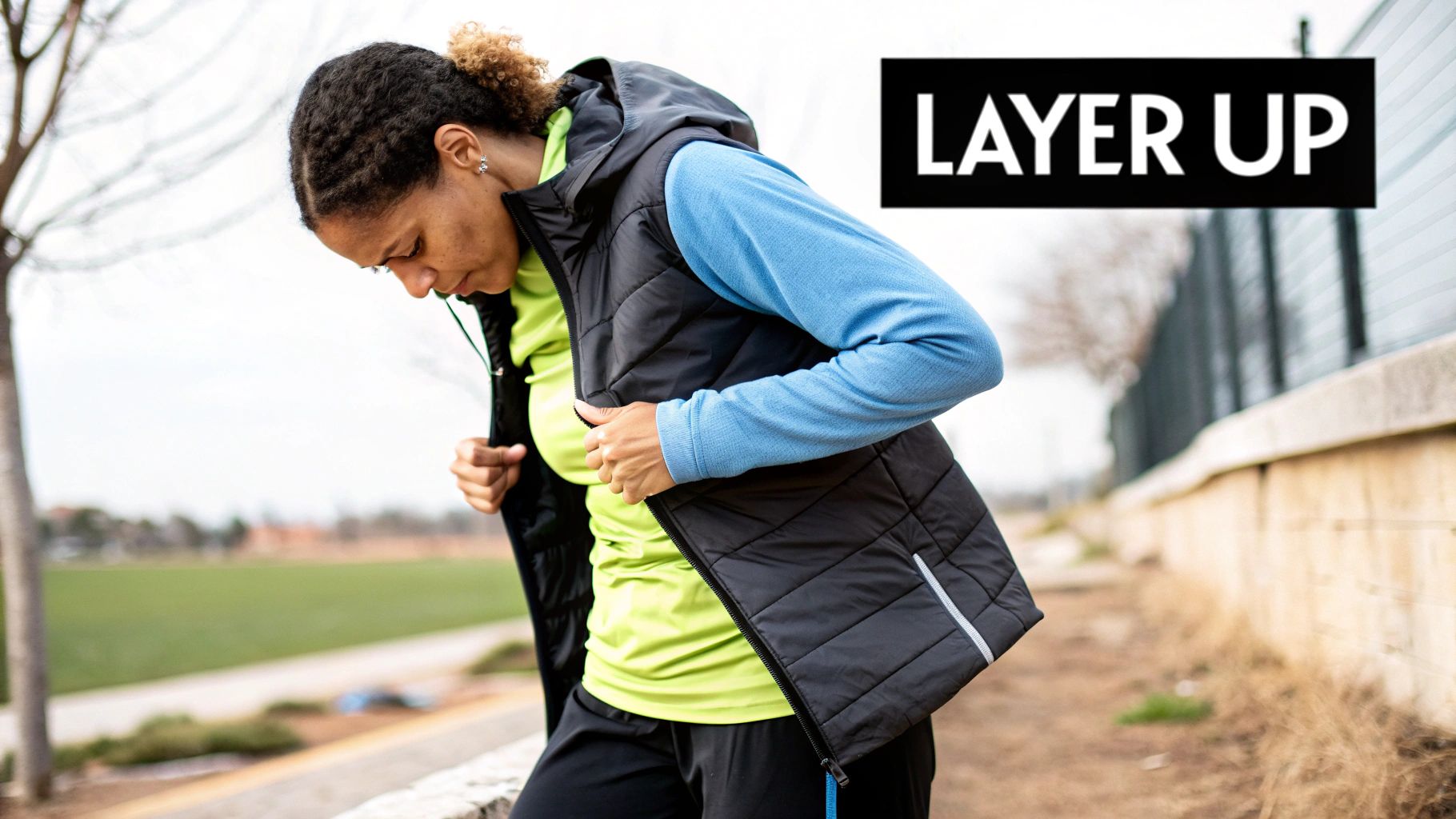 Your best bet is to find pieces that blend insulation with stretch. Fleece-lined leggings are a fantastic option, giving you warmth without getting in the way. For your upper body, pairing a thermal base layer with an insulated vest is an ideal solution. A vest keeps your core warm—which helps your entire body feel warmer—while leaving your arms totally free to move.