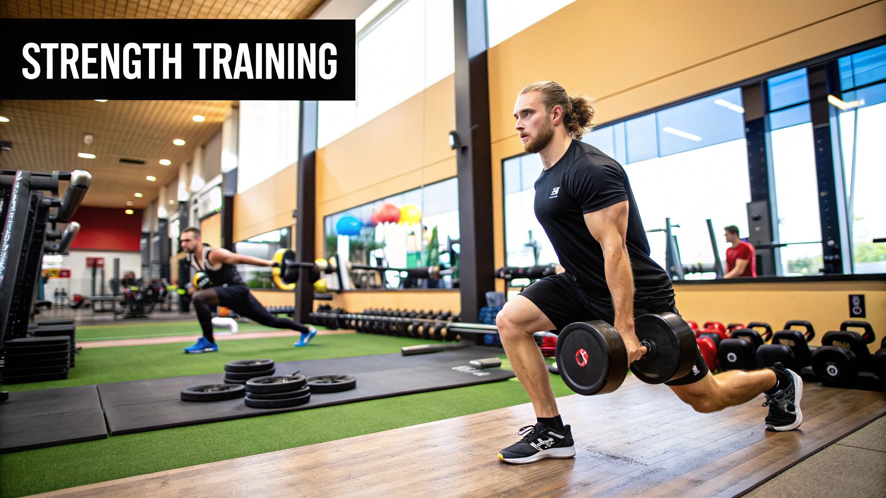 Forget what you see bodybuilders doing. Your goal isn't just to move heavy weight; it's to move your body with explosive power, to change directions on a dime, and to still have your legs under you for a late-game free throw. Think about the actual movements in a game: short sprints, defensive slides, explosive jumps. That's what your conditioning needs to mirror.