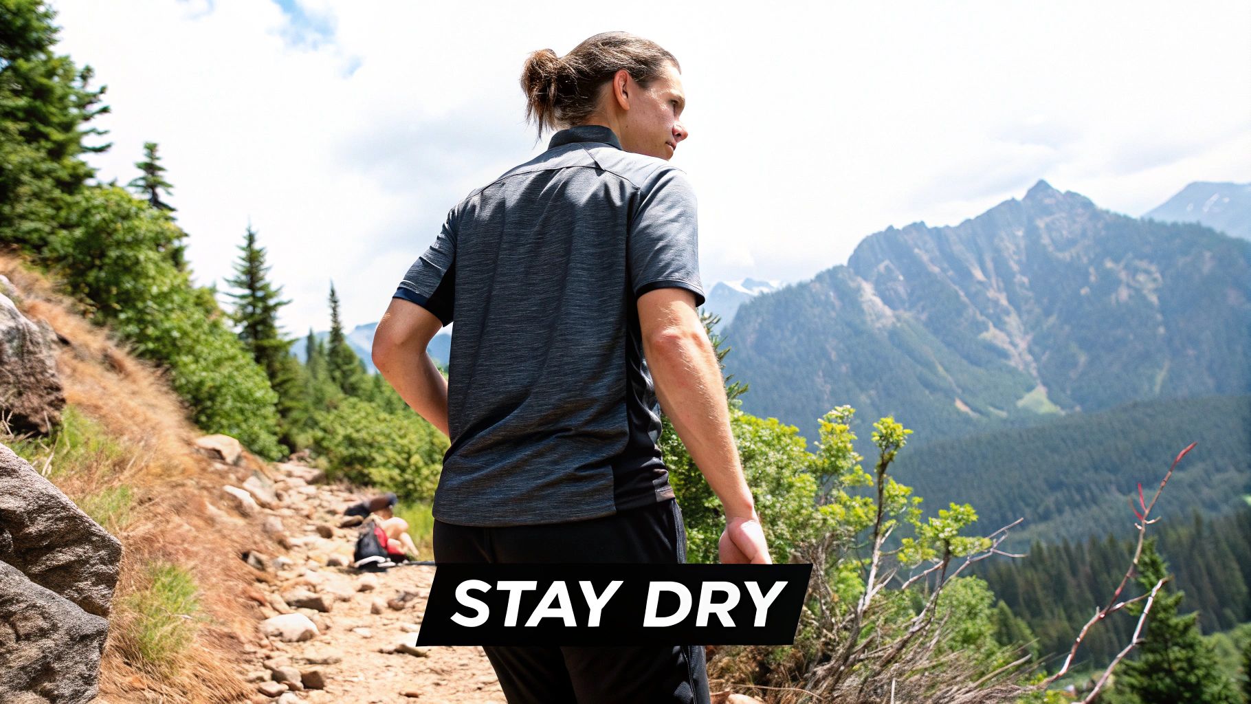 The single most important piece of clothing when deciding what to wear hiking is your base layer. This is the shirt that sits directly against your skin, and its primary job is moisture management. Unlike a standard cotton t-shirt that soaks up sweat and clings to you, a technical base layer is engineered to pull, or "wick," perspiration away from your body. This wicking action disperses moisture across the fabric's surface, allowing it to evaporate quickly and keeping you dry.